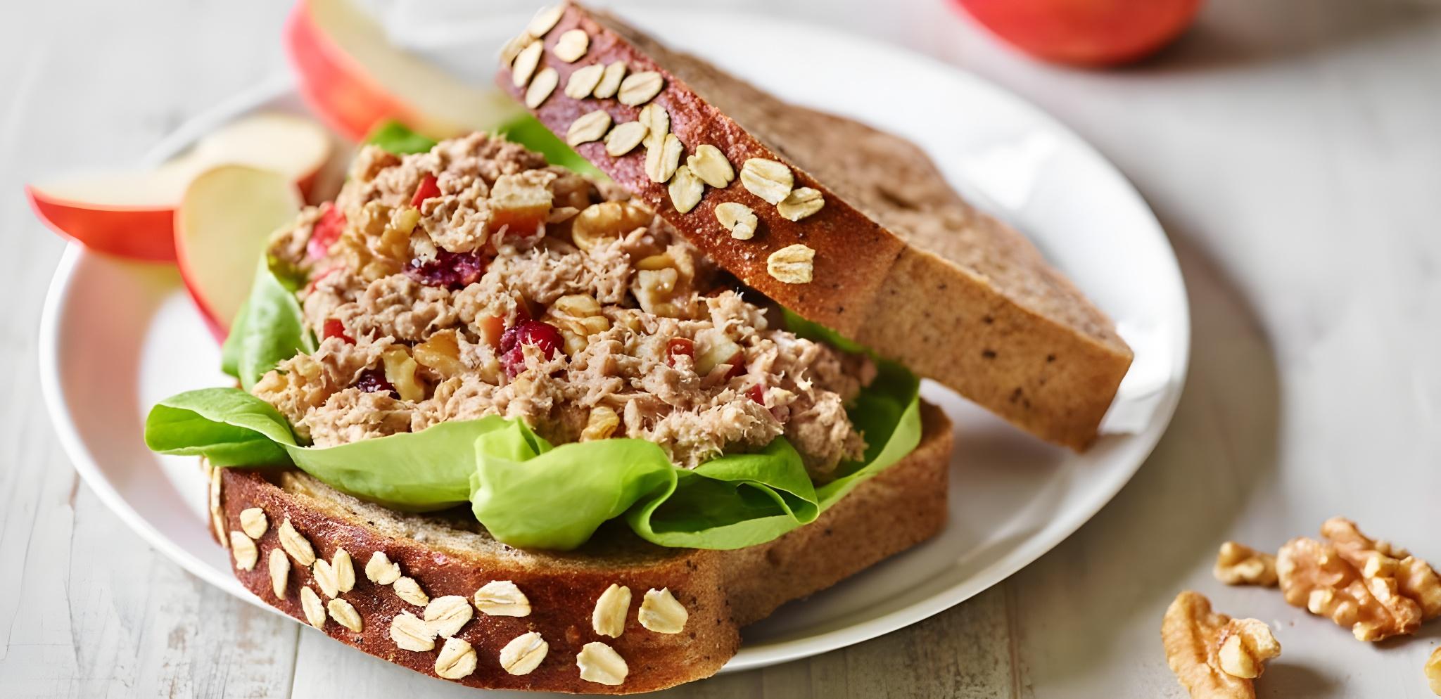 Elma ve Cevizli Ton Balıklı Salatalı Sandviç